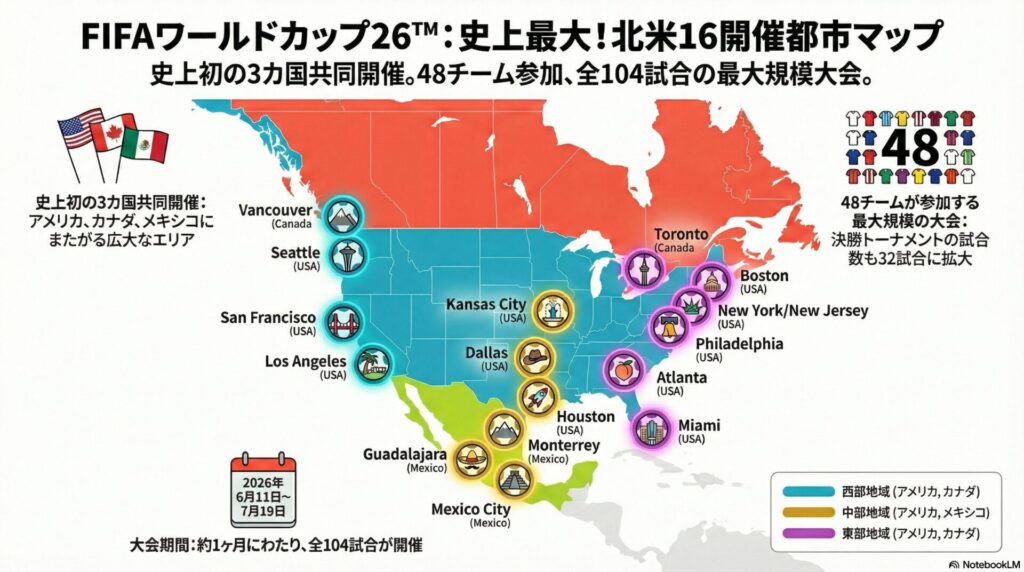 W杯2026の特徴|48チーム・3カ国16都市という史上最大規模