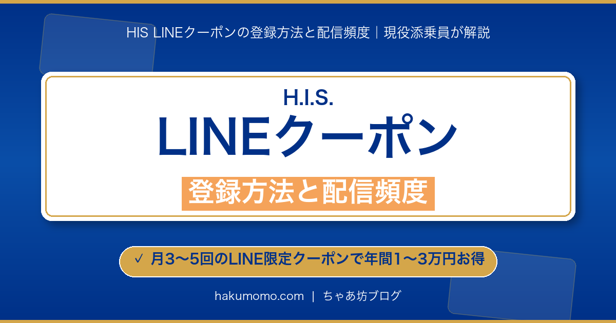 こんにちは、添乗員歴25年・旅行ブロガーのちゃあ坊です。HISのツアーをキャンセルすると、使用したクーポンは原則として戻ってきません。ただし条件次第では再発行されるケースもあるので、この記事で全パターンを整理します。