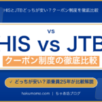 初期価格の安さで選ぶならHIS、クーポンを最大10枚併用して大幅割引を狙うならJTB。最終支払額は両社似た水準になることが多いので、「自分が探している商品で価格比較」が最強の正解です。