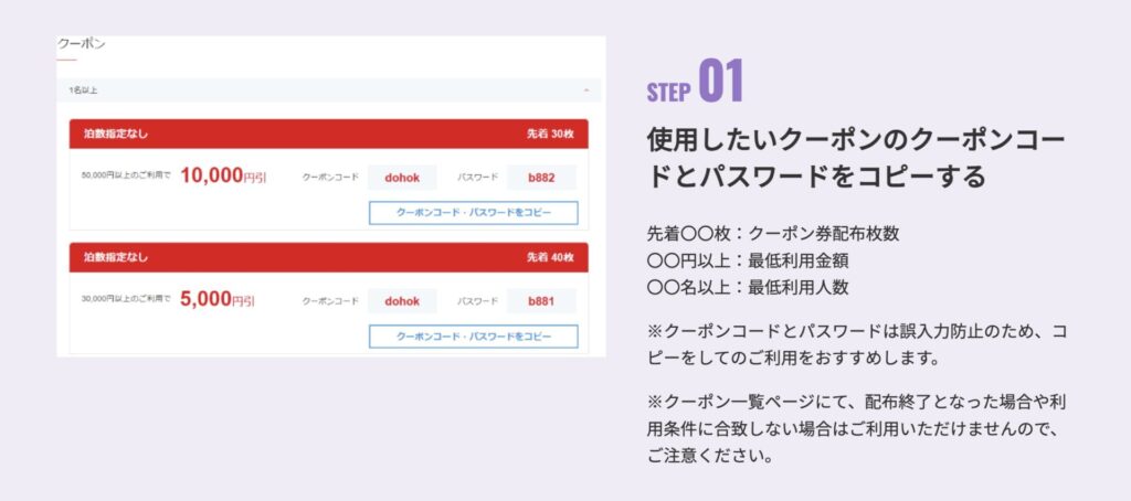 STEP1:クーポンコードとパスワードをコピー