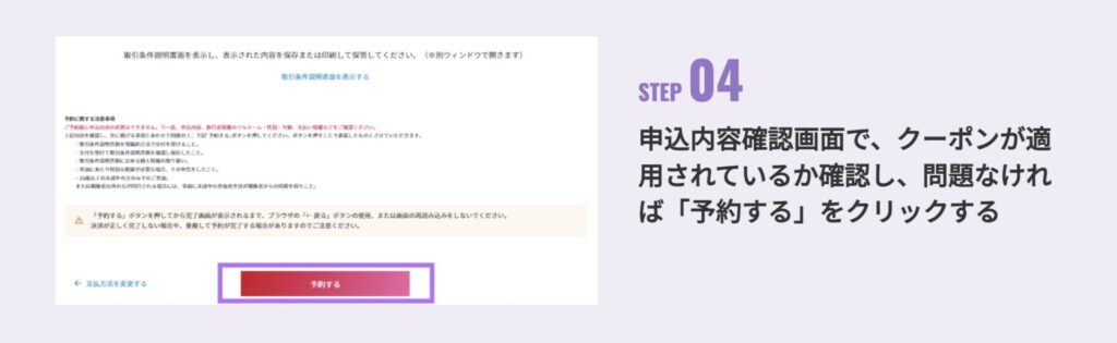 予約後にクーポン適用はできない