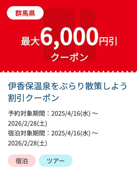 | 伊香保温泉をぶらり散策しよう割引クーポン |