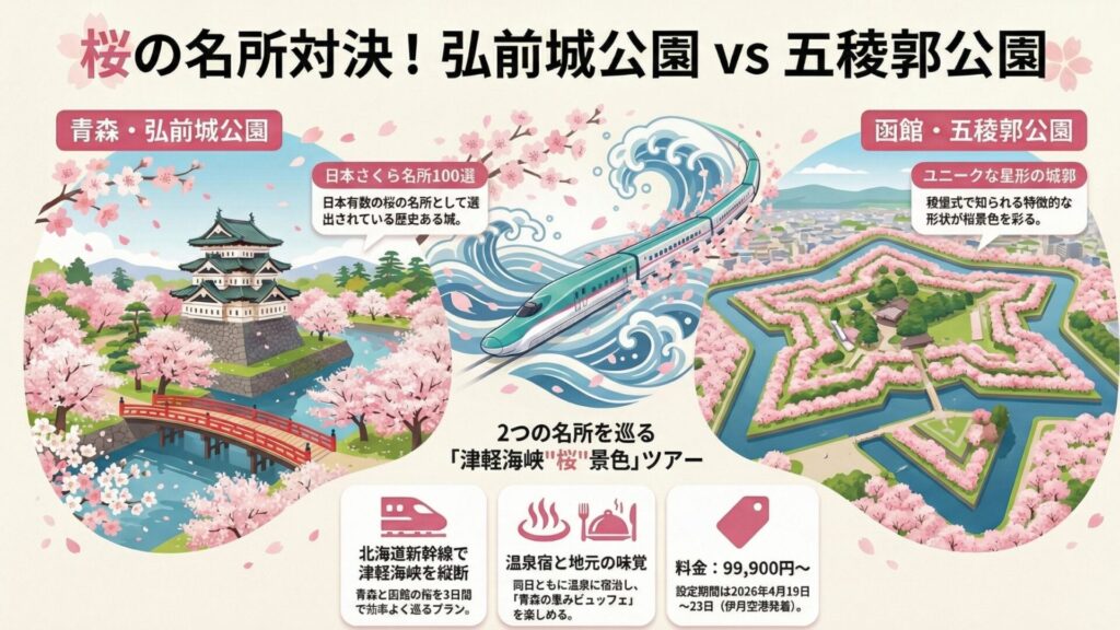 ツアー名:北海道新幹線で津軽海峡縦断!桜景色3日間