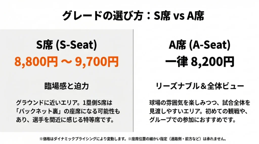 - S席は日程で価格が動くことがある(人気カード・需要で変動しやすい)